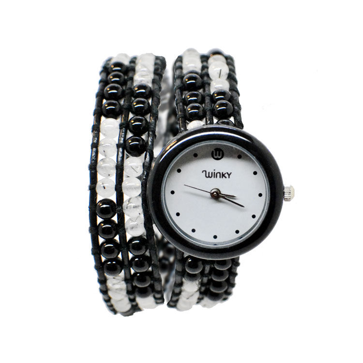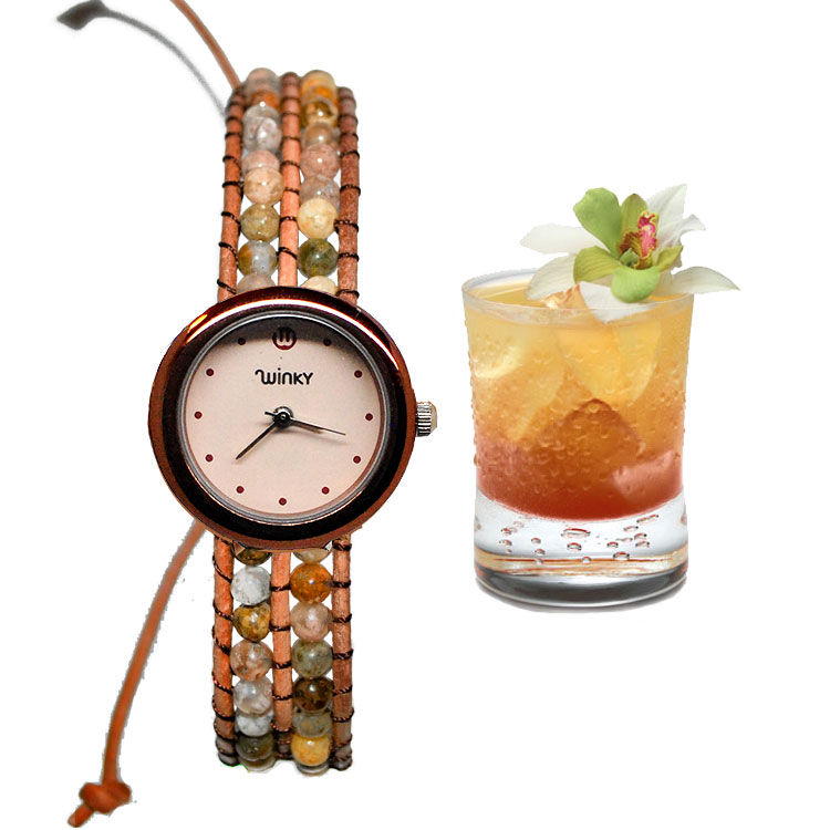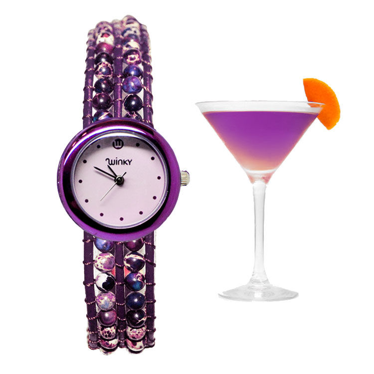 Winky Design's "On the Rocks" bracelet watch collection is a great combination of elegance and style. Each watch features precious stones hand-woven through genuine leather bracelets to create a unique design that reflects the cooling cocktail from which it takes its name. The watches are all water resistant with high-quality Japanese quartz movement, and the collection comes in three styles: Single Wrap Watch, Double Wrap Watch, and 5-Layer Bracelet. With refreshing flavors like the Caribbean Seabreeze and the Purple Haze, it's happy hour, every hour when you've got one of these on your wrist!